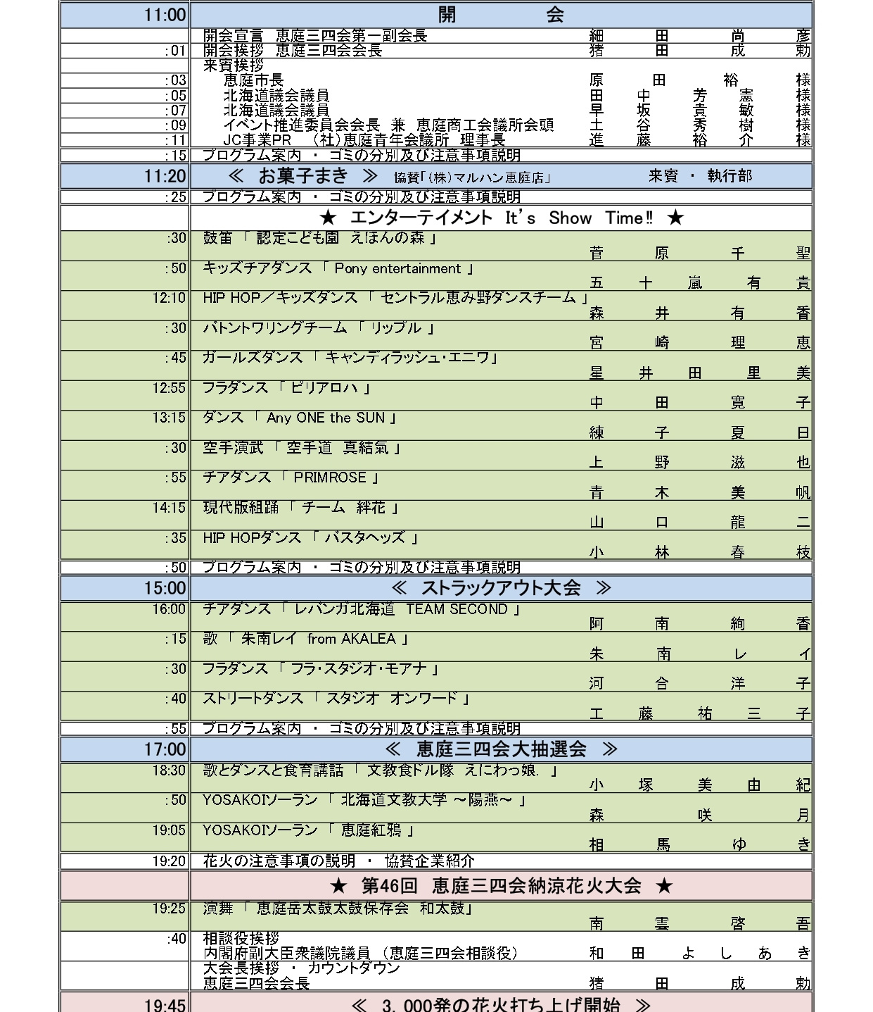 きれいな会場作りに、ご協力をよろしくお願いいたします。