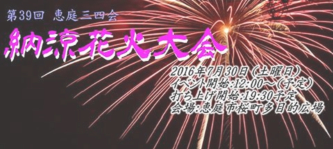恵庭三四会・納涼花火大会恒例となりました、「恵庭三四会・納涼花火大会」を運営しております。