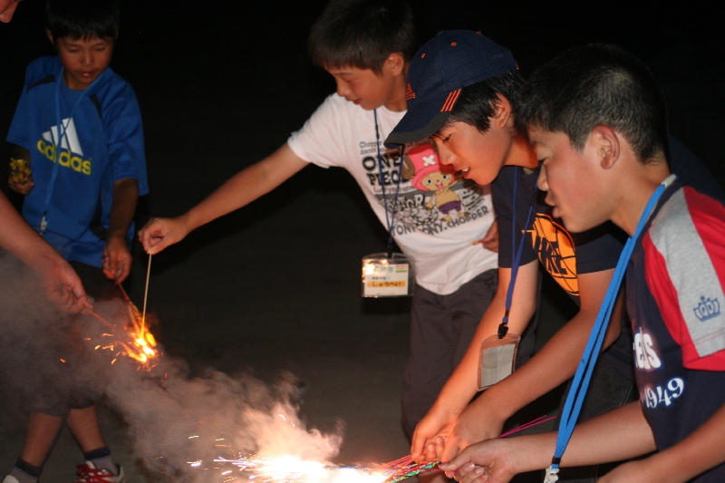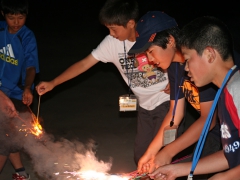 三四会では二本松市の子供たちと手持ち花火を行い、最後は打ち上げ花火で締めくくった。